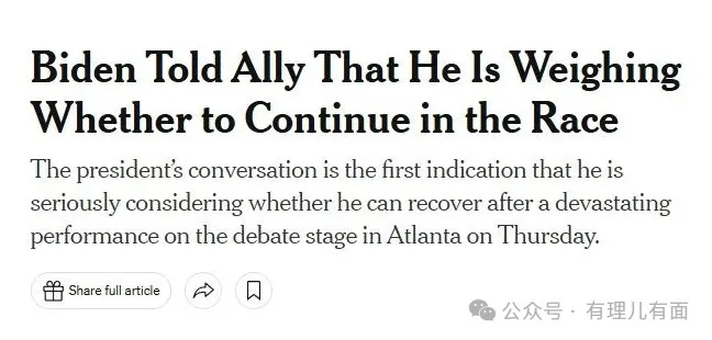 儘管“總統無法從辯論中恢復過來”明顯是一句笑談,但隨後各大媒體迅速蜂擁而上,一致呼籲“拜登退選”!