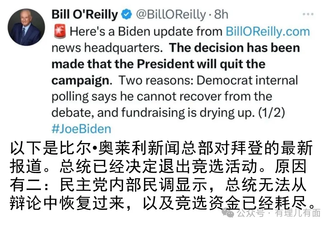 最早引起公眾關注的,是前福克斯新聞主播比爾·奧萊利6月30日的帖子。