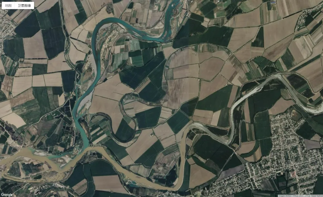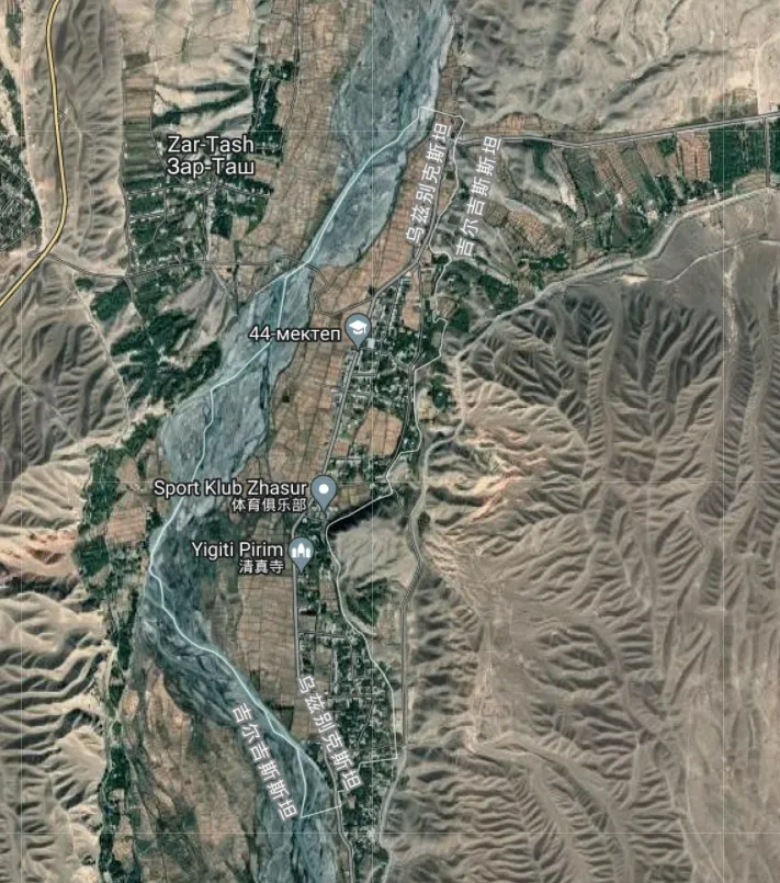 ▲費爾幹納盆地裏的錫爾河、農田和居所,在遠離海洋的大陸內部(烏茲別克斯坦是世界唯二的雙重內陸國之一),這裏的綠色欣欣向榮,可見水源條件確實好。