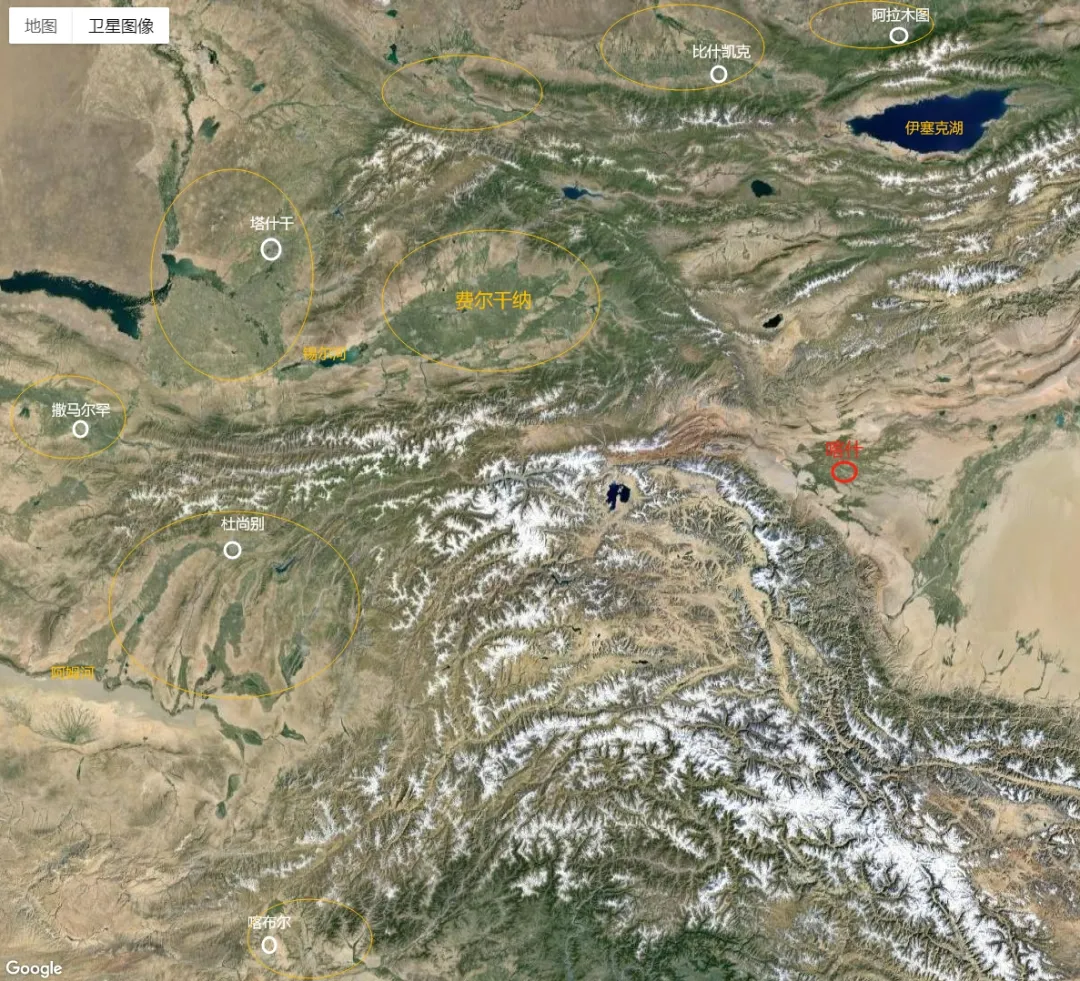 我國新疆往西,山腳下一個個山谷、盆地,有水也有土地,是中亞最精華的土地,補給它們的水源包括額爾齊斯河、伊犁河、楚河、錫爾河、阿姆河等,中亞各國的大城市多在這些山谷和盆地裏。費爾幹納盆地正是其中規模最大的一片盆地,人口密集。