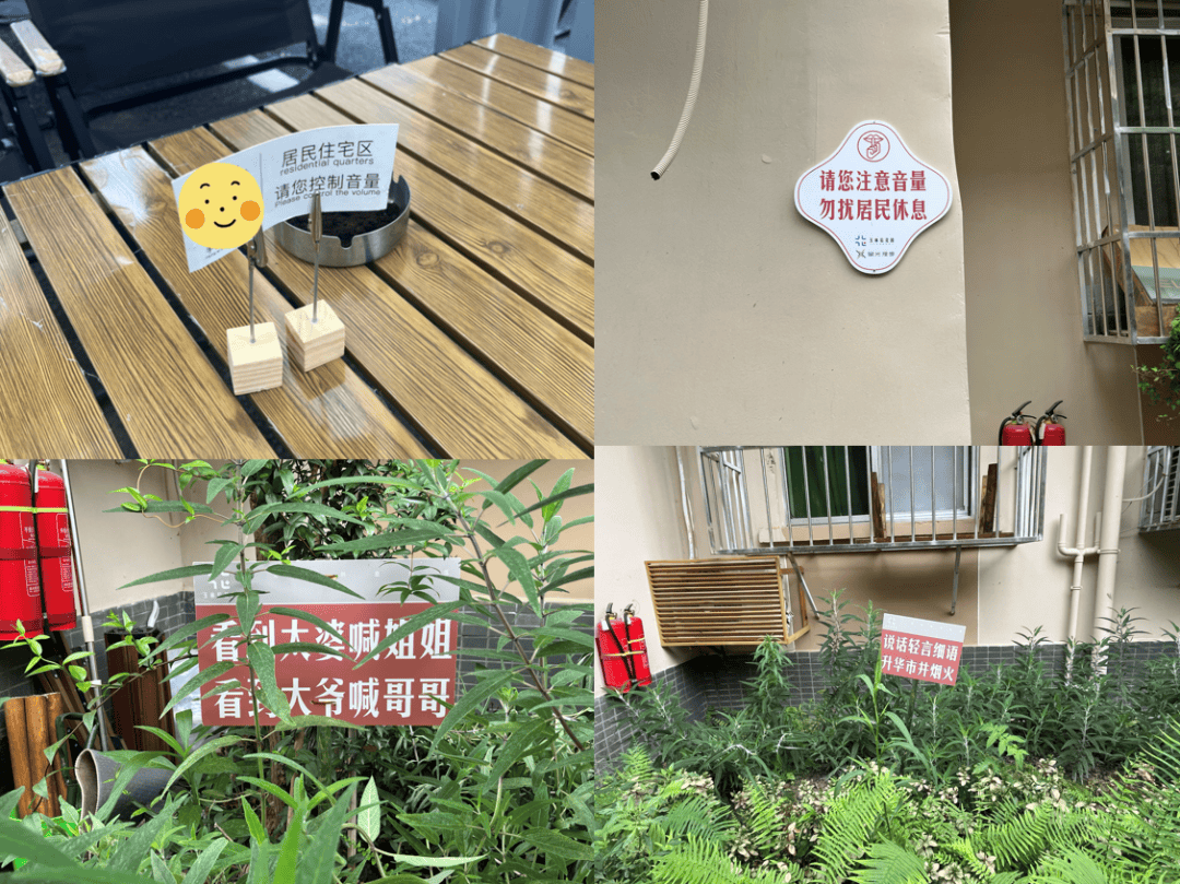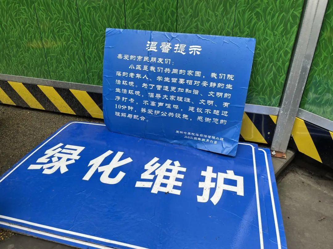 而在小區內部,基本隔個兩三米就能看到用各種方式提示安靜的牌子