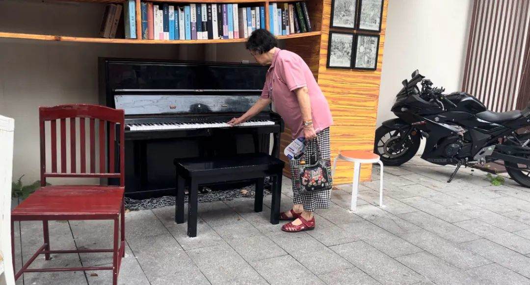 從玉林西路一路向東溜達去買菜的八十歲奶奶,看到街頭鋼琴也要玩上一玩