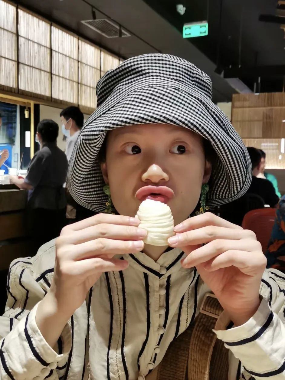私服穿搭雖然隨意,但素顏吃飯的模樣,卻難掩鬆弛愜意的精神狀態。