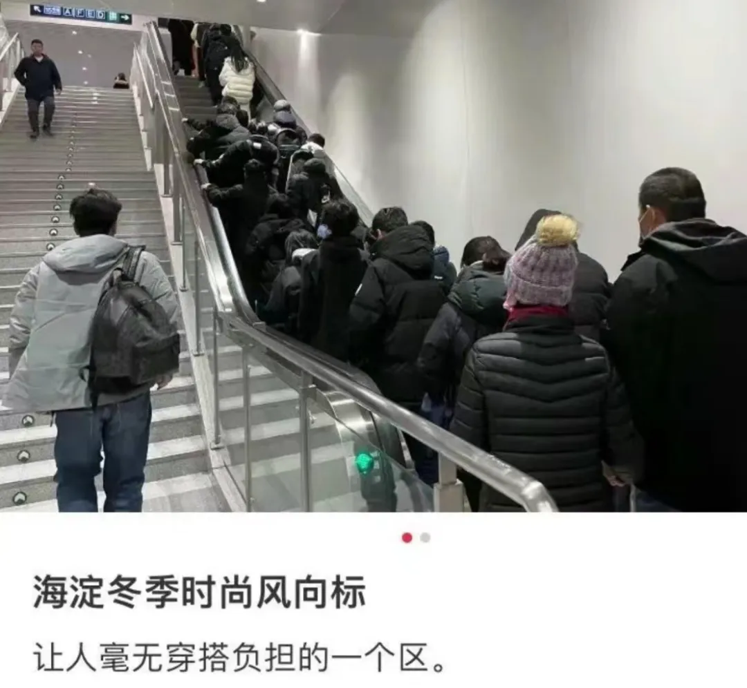 不顯髒的黑色羽絨服,才能扛住擁擠的人羣和落灰的樓梯扶手;