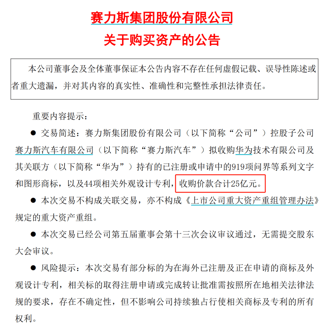 **25億轉讓“問界”相關商標,為什麼華為要把一手打造的“問界”品牌賣掉?**有些網友説,這是好事啊。這説明問界要出海了,與華為做切割,準備進軍海外市場了。但也有人質疑稱,華為也太狠了,賽力斯好不容易賺點錢,剛剛打正盈虧線,就要花25億買華為的商標,這也太坑了吧?這是怎麼回事呢?賽力斯用25億,買“問界”相關商標,划算嗎?