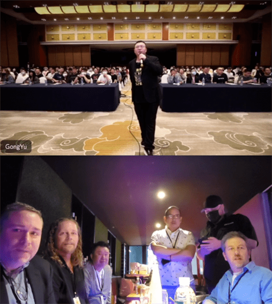 2022年在舉辦的重慶Bar Citizen就令許多人記憶猶新——中國玩家們包下了一家酒店的大會廳,在會議桌前正襟危坐,猶如在參加股東大會;而這樣的場面顯然衝擊到了連線的遊戲官方團隊,以至於短暫地關閉了攝像頭,調整到更加正經的狀態。