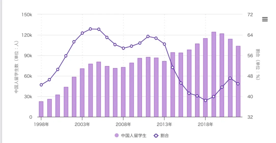 如今,在日本留學生中,中國留學生是佔據了“半壁江山”。即便如此,相較以往,近年來中國赴日留學人數卻略微下降。