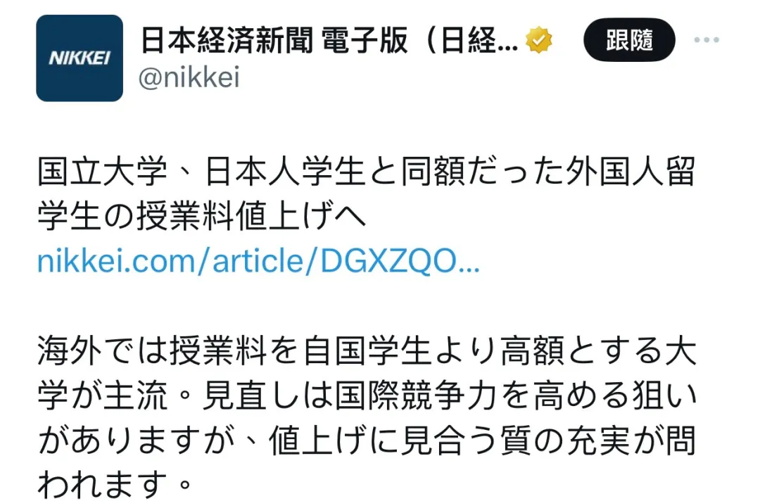 據《日本經濟新聞》報道,日本政府有意取消外國留學生的學費上限,將會提高所有學生的學費。