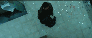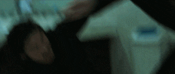 而殺手的反攻,是將碎玻璃插入馬隊的胳膊,加入臉特寫,也是痛。