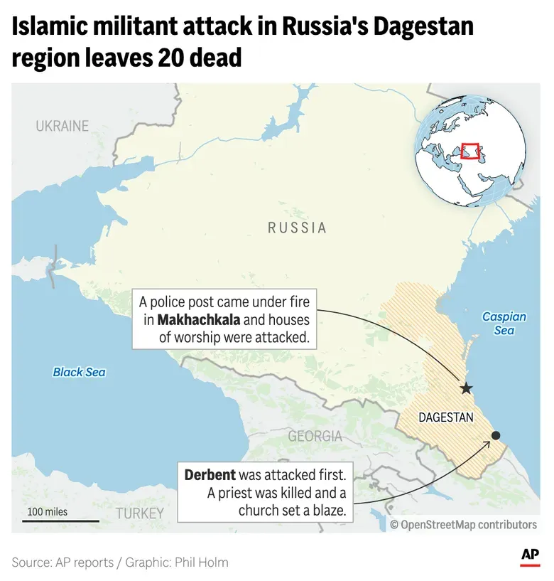 6月23日晚,在俄羅斯聯邦的達吉斯坦共和國第二大城市——傑爾賓特突然發生恐怖襲擊事件:多名恐怖分子手持自動武器,衝進了一所正在進行宗教活動的東正教堂,先是槍殺警衞,然後刺死了66歲的東正教牧師尼古拉·科特爾尼科夫。