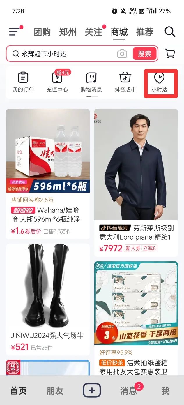 抖音更是早在2023年就升級了其電商旗下小時達業務的權重,為“小時達”業務上線獨立入口,用户可以在抖音搜索欄內搜索“小時達”直接觸達,也可以通過抖音首頁的“商城”界面進入“小時達”業務。