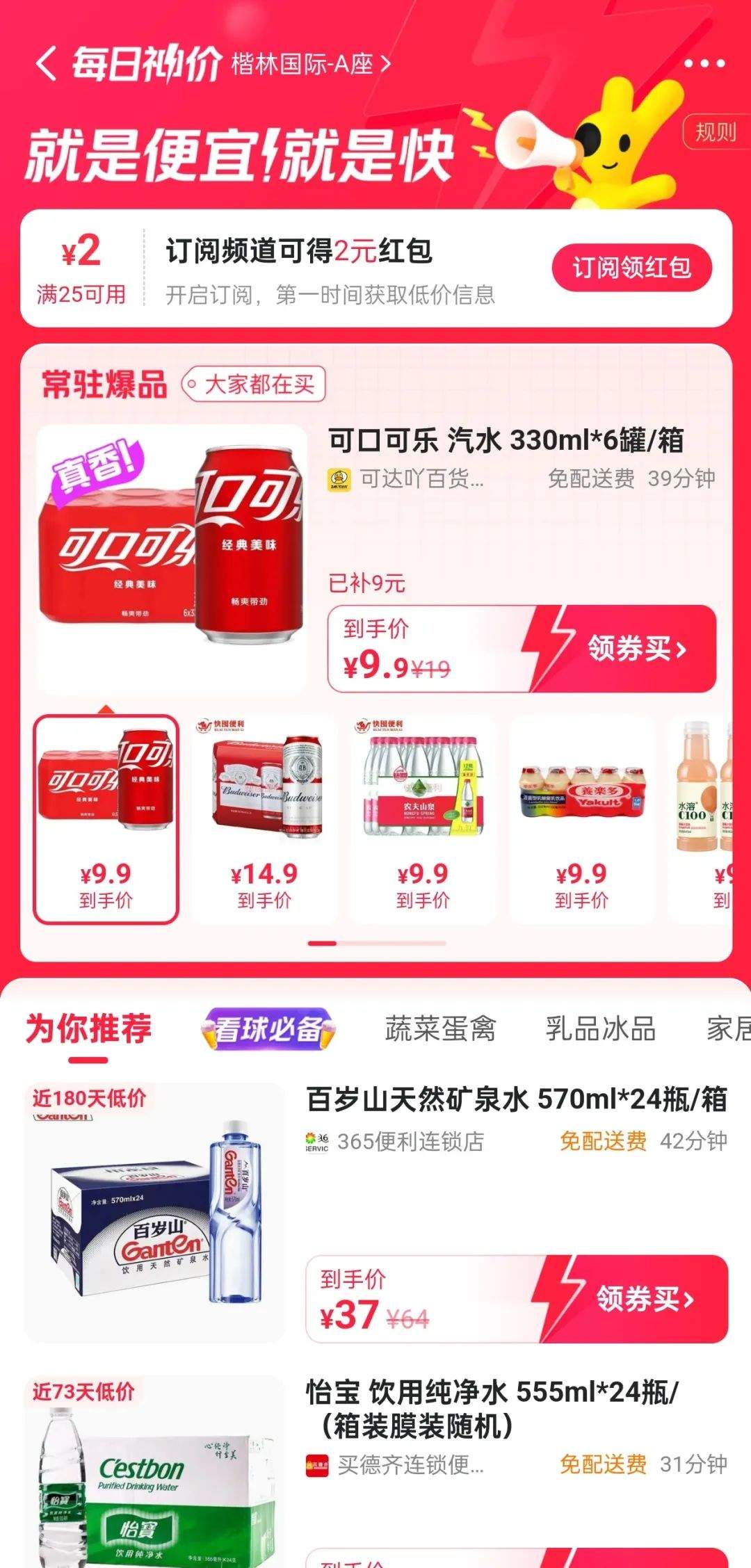 畢竟早在2020年淘寶就已經上線“小時達”服務,並宣佈未來一年上線16城。和當下一樣,頻道內的商品既有來自天貓超市,也有來自淘鮮達上的商超,同時頻道內還接入了餓了麼上諸多超市、便利店的商品。