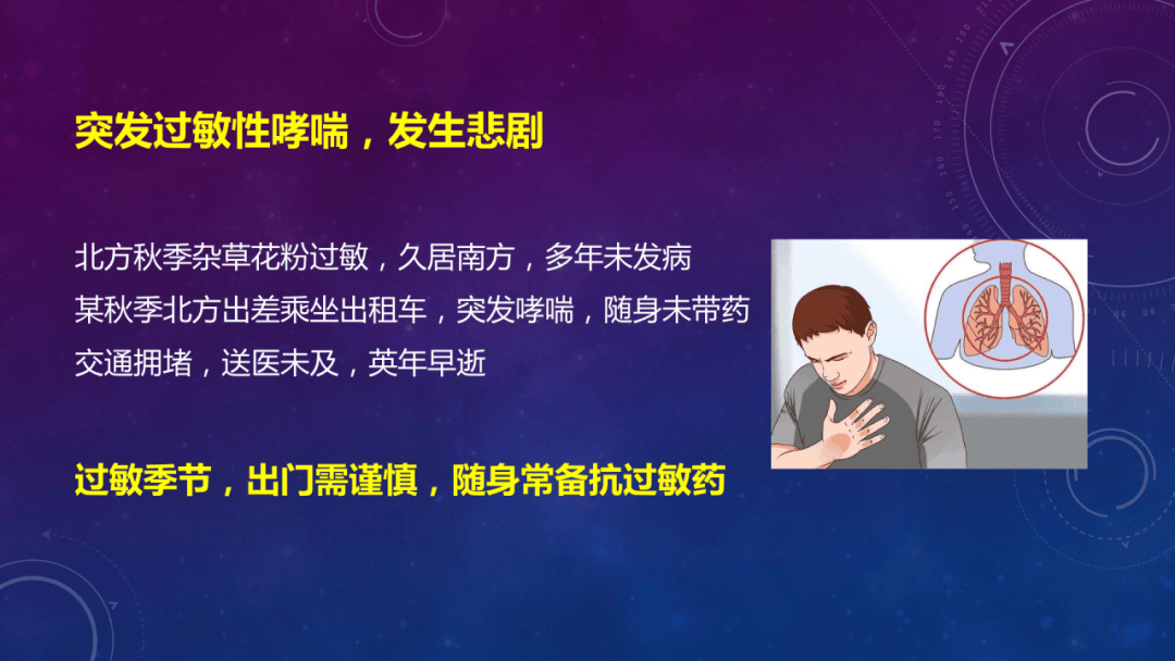 有一次恰好秋季他來北方出差,出差完以後,坐出租車去機場,秋季花粉濃度非常高,突發哮喘,他趕緊趕往醫院,但是交通擁堵,就沒有很及時地去到醫院,而且身邊又沒有帶藥,沒有救治過來,不幸英年早逝,因為過敏失去生命還是非常痛心的。