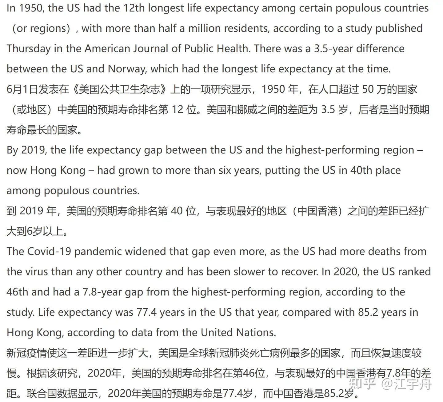 據CNN報道,與其他高度工業化的發達國家(或地區)相比,近幾十年來美國的預期壽命一直處於較落後水平。作為全球新冠肺炎死亡病例最多的國家,新冠疫情進一步縮短了美國的預期壽命,拉大了差距。