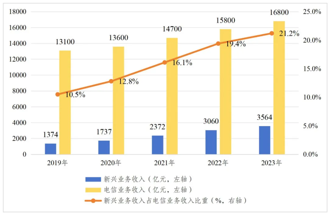 圖4 2019-2023年通信領域新興業務發展情況