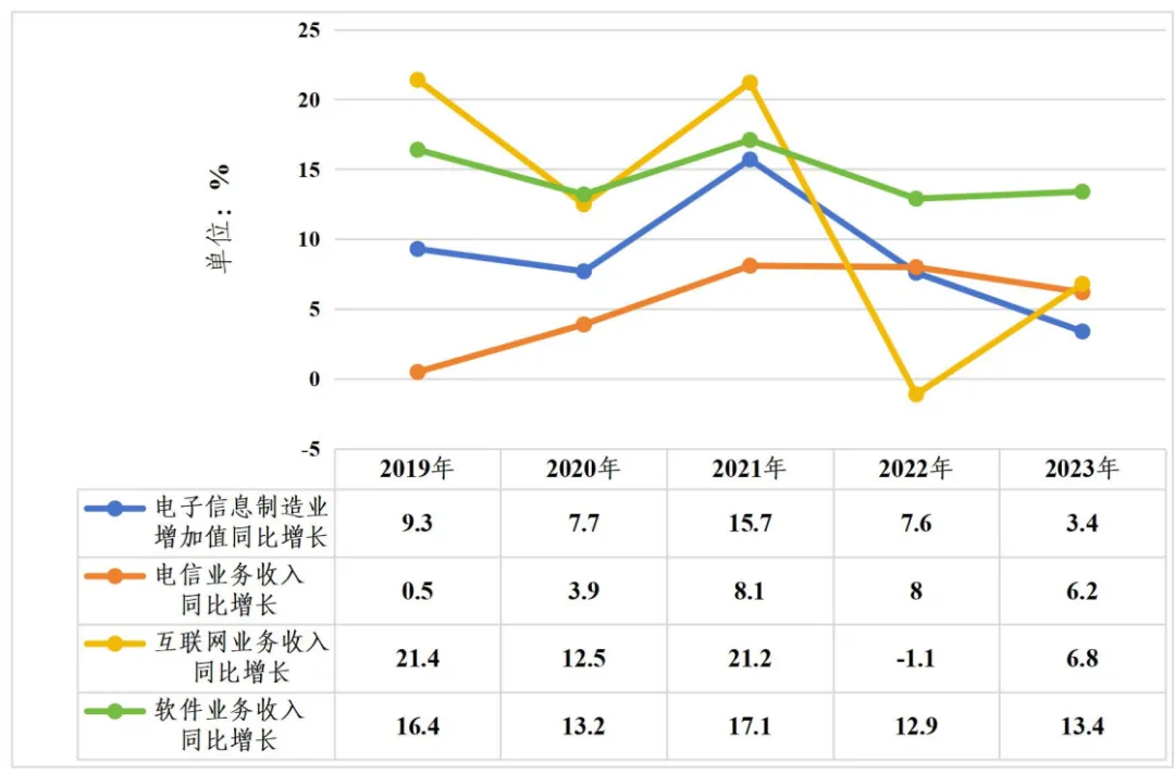 圖3 2019-2023年數字經濟重點行業同比增速變化情況