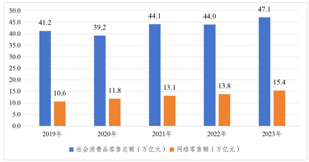 圖5 2019-2023年網絡零售額髮展趨勢