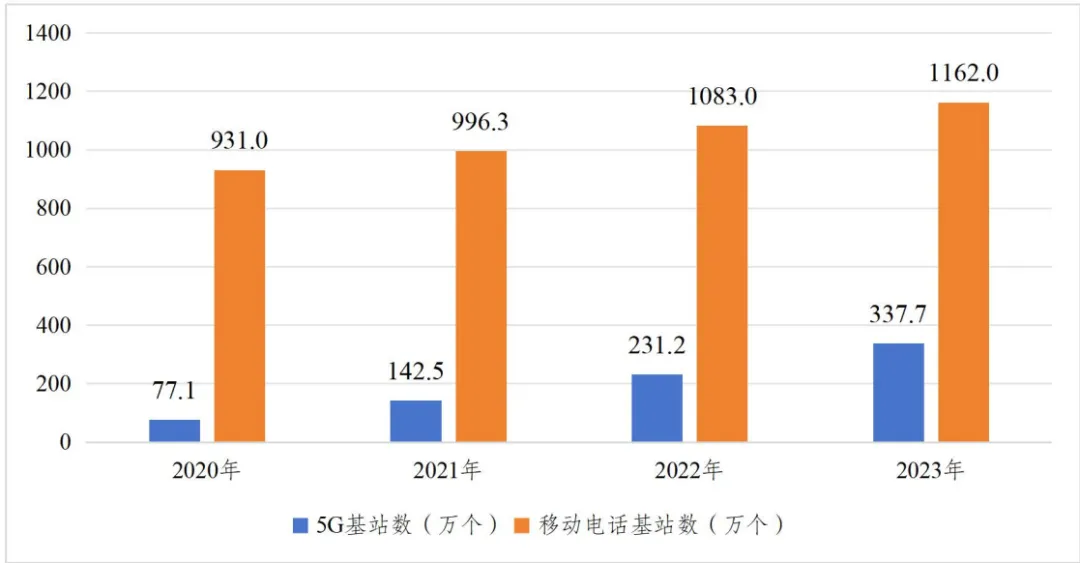 圖2 2020-2023年移動電話基站發展情況