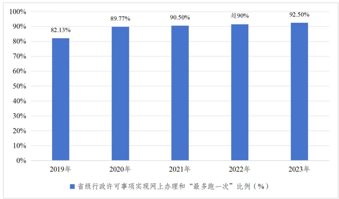 圖8 2019年—2023年省級行政許可事項實現網上受理和“最多跑一次”比例