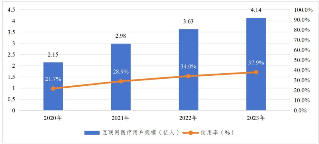 圖11 2020 年—2023 年互聯網醫療用户規模及使用率