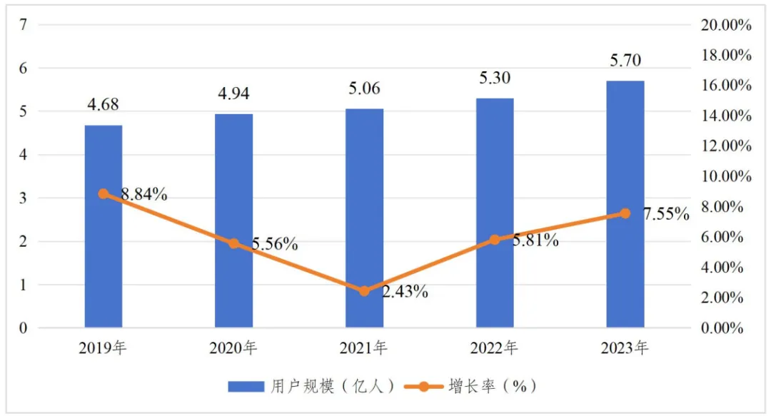 圖9 2019年—2023年數字閲讀用户規模和增長率