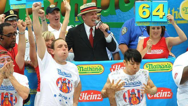在「大胃王」的圈子裏,內森吃熱狗大賽被看作是「吃貨的世界盃」。自1972年以來,這項比賽雷打不動在美國獨立日上演,比賽規則很簡單:誰能在限定時間內吃掉最多的熱狗,誰就獲勝。