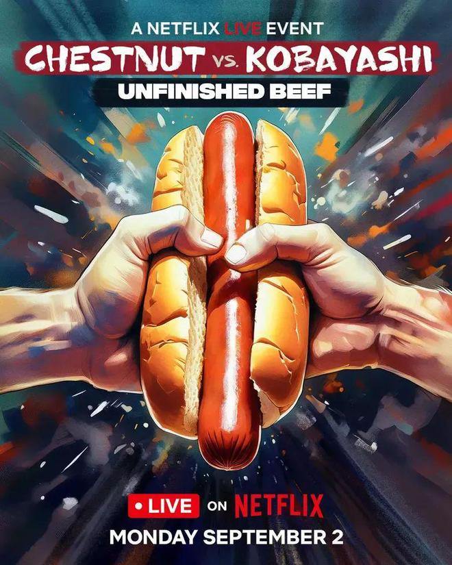 無論幕後真相如何,流量確實是繞不開的因素。而就在內森熱狗大賽宣佈切斯納特被禁賽的幾個小時內,Netflix迅速宣佈了一項新的飲食競賽節目——《切斯納特VS.小林尊:未竟之戰》,將於9月2日播出。