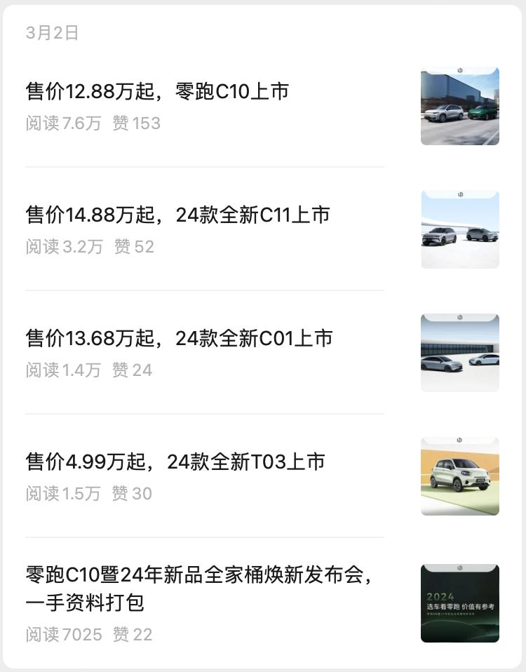 零跑“2024全新產品全家桶”推文,圖源零跑汽車官方微信公眾號
