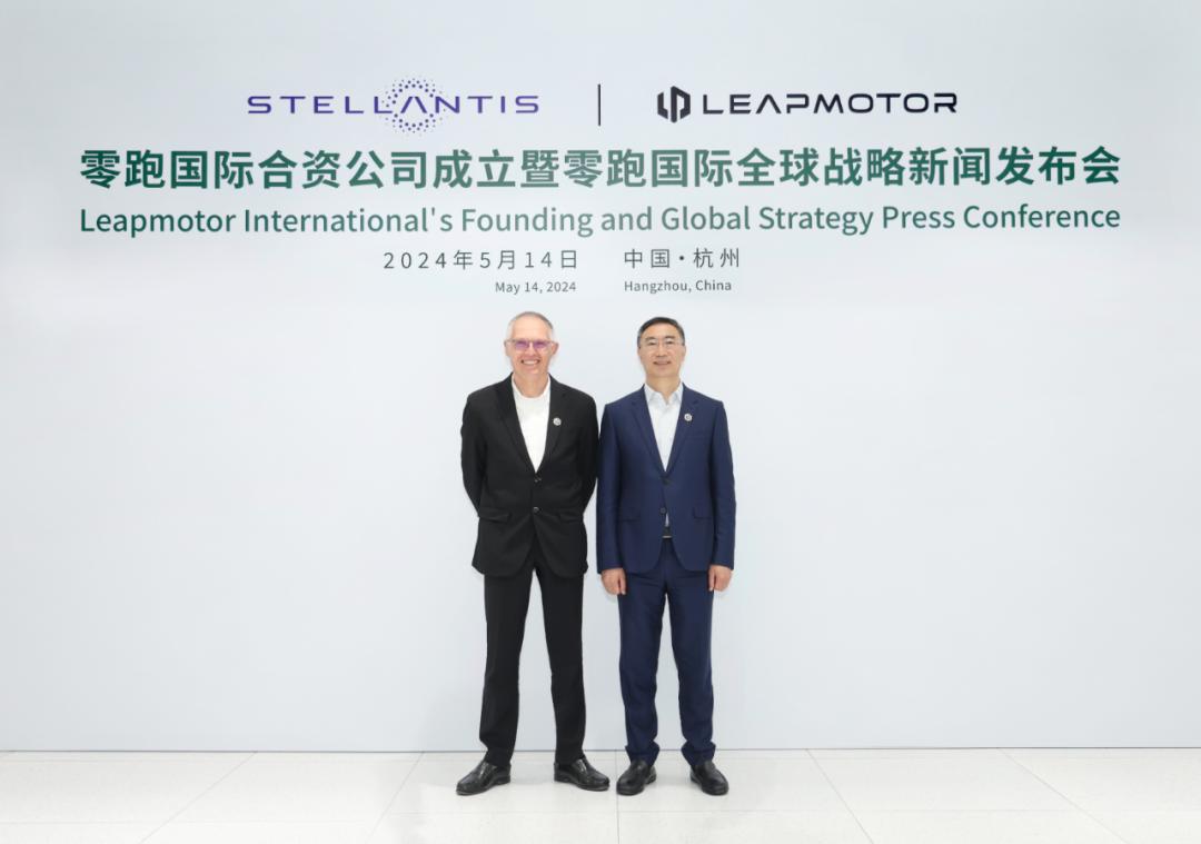 零跑國際成立儀式,左為Stellantis集團全球CEO唐唯實,右為朱江明,圖源零跑汽車官網