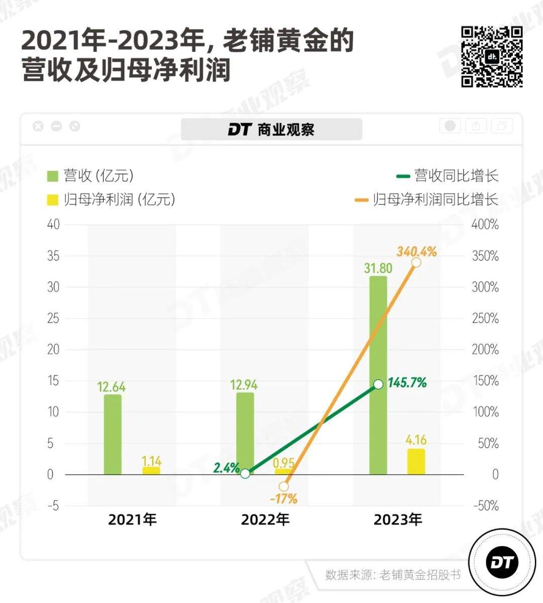 從2021年到2023年,老鋪黃金前兩年的營收都在12億元左右,在2023年突破了30億元,同比增長達到145.7%。