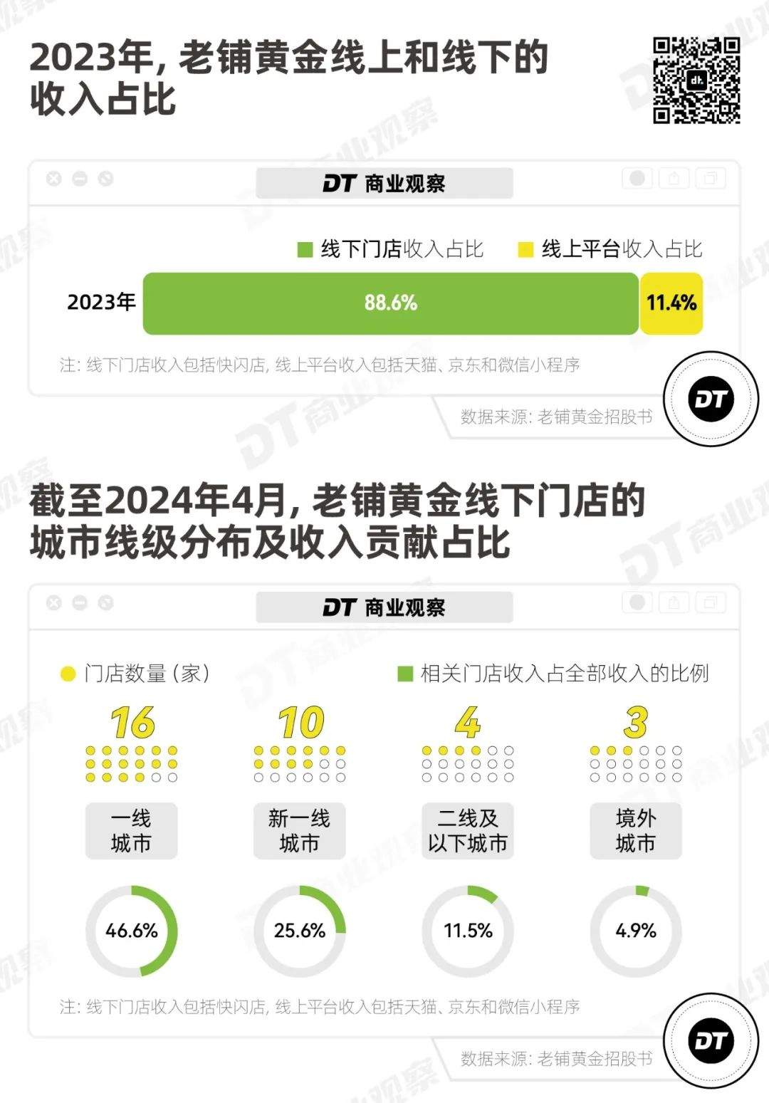 但和其他黃金品牌拓展多個城市、甚至開放加盟的情況不同,老鋪黃金的門店數並不多,一共只有33家,而且近8成店鋪集中在一線城市和新一線城市,以入駐高端商場為主。