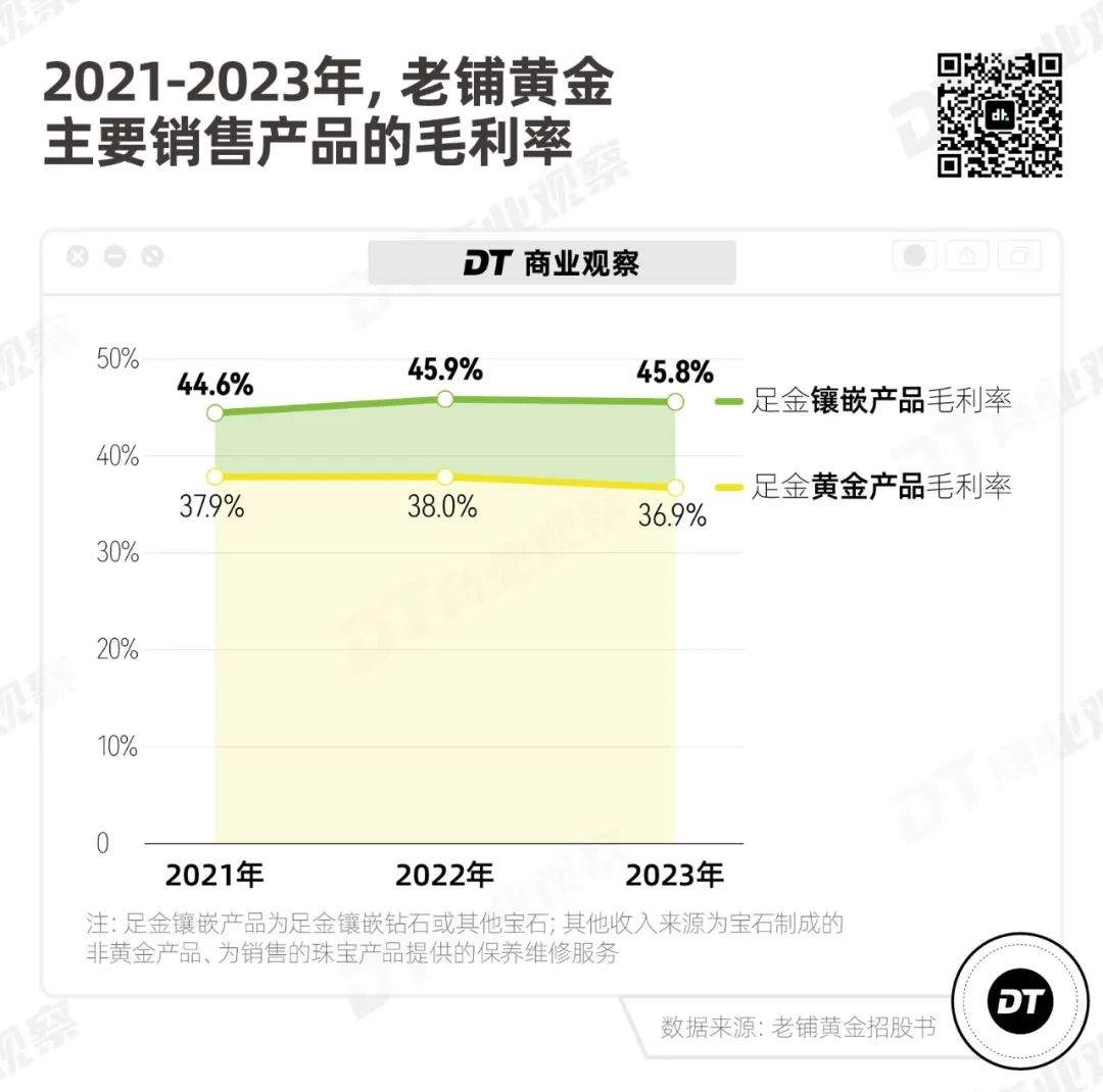 足金黃金產品的毛利率則在2023年降到36.9%,同比下降1.1個百分比。