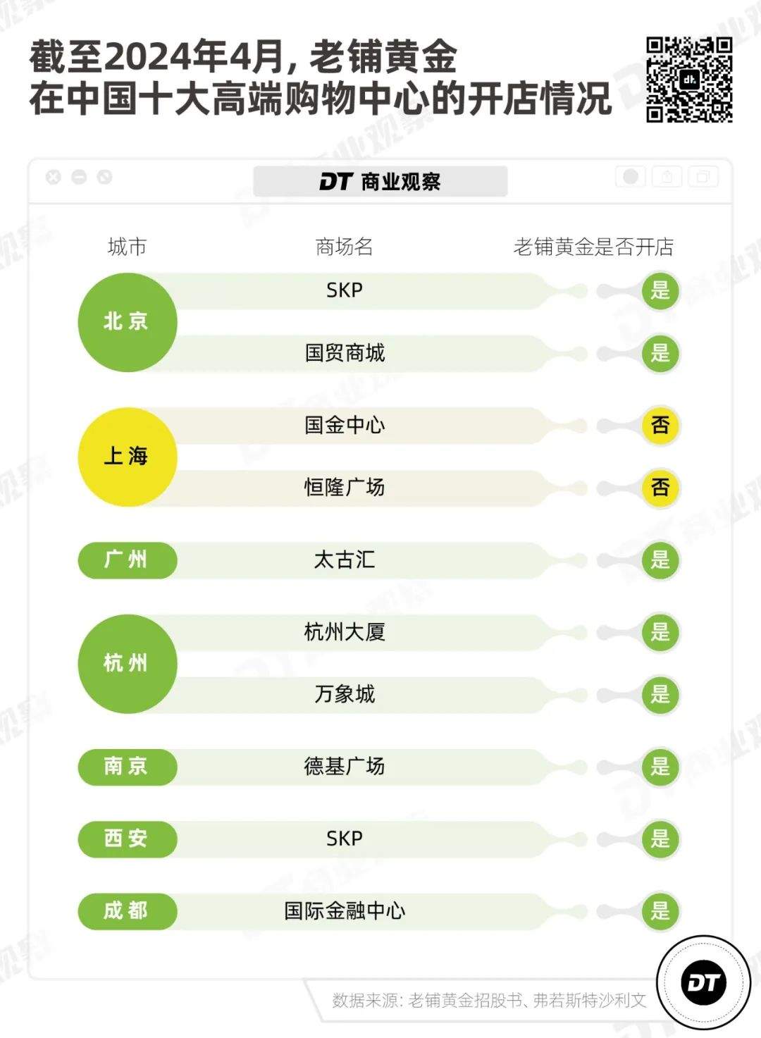 **在全國TOP 10的高端商場中,老鋪黃金已經覆蓋了其中8家,**只差上海國金中心和上海恆隆廣場。