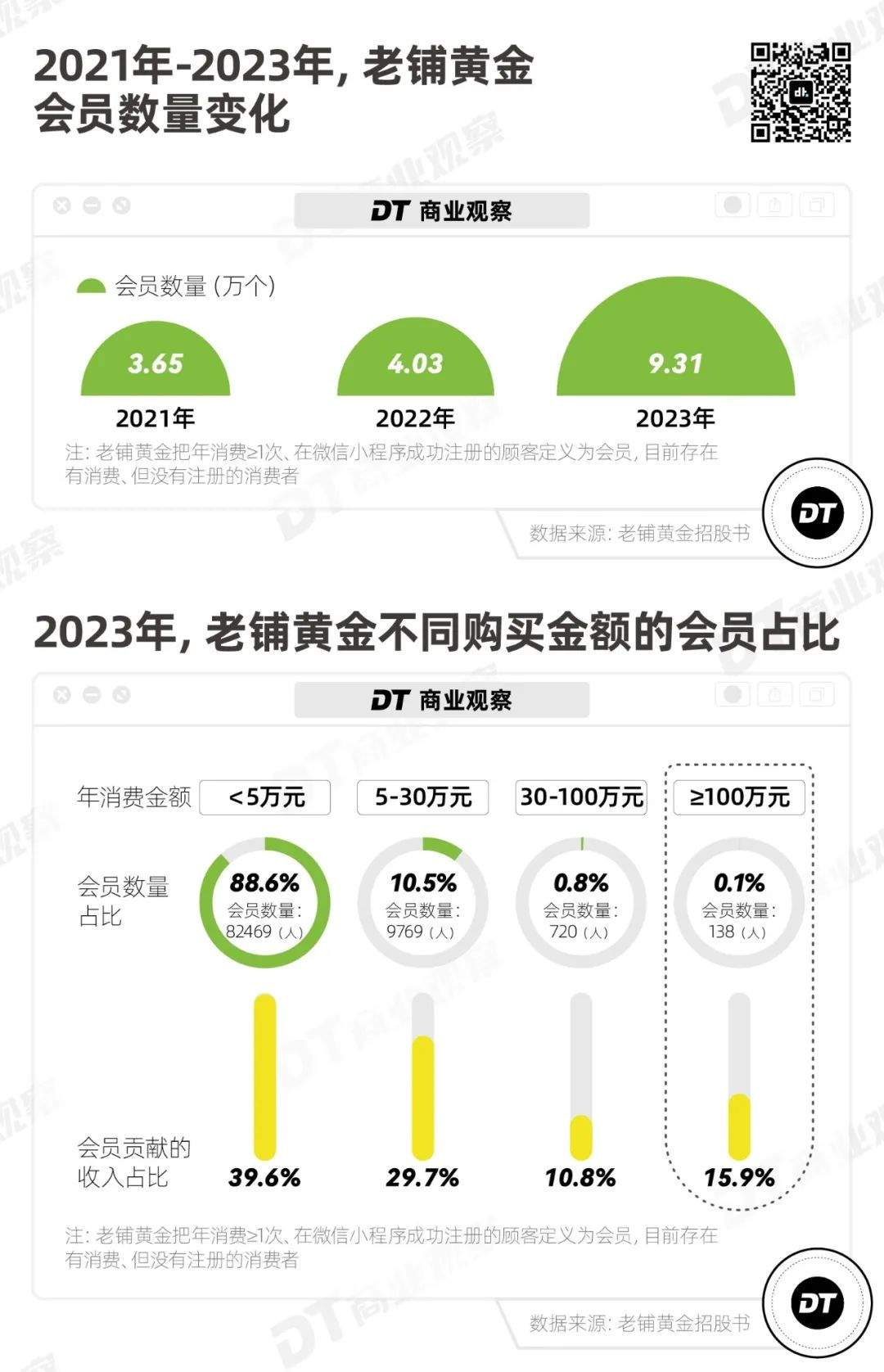 從會員數量來看,老鋪黃金2023年的會員數(老鋪黃金將購買過一次且在微信上註冊賬户的消費者看作“會員”)是2022年的兩倍多,達到9.31萬,可以説是“拉新”成功。
