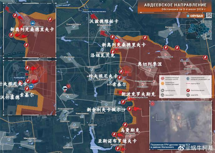 🔻俄羅斯指揮部進一步將發展對葉夫根尼夫卡和新舍利夫卡佩爾沙的攻勢。來自前線的信息表明,俄羅斯軍隊在阿瓦迪夫卡方向的多個地區同時取得了顯著的成果。