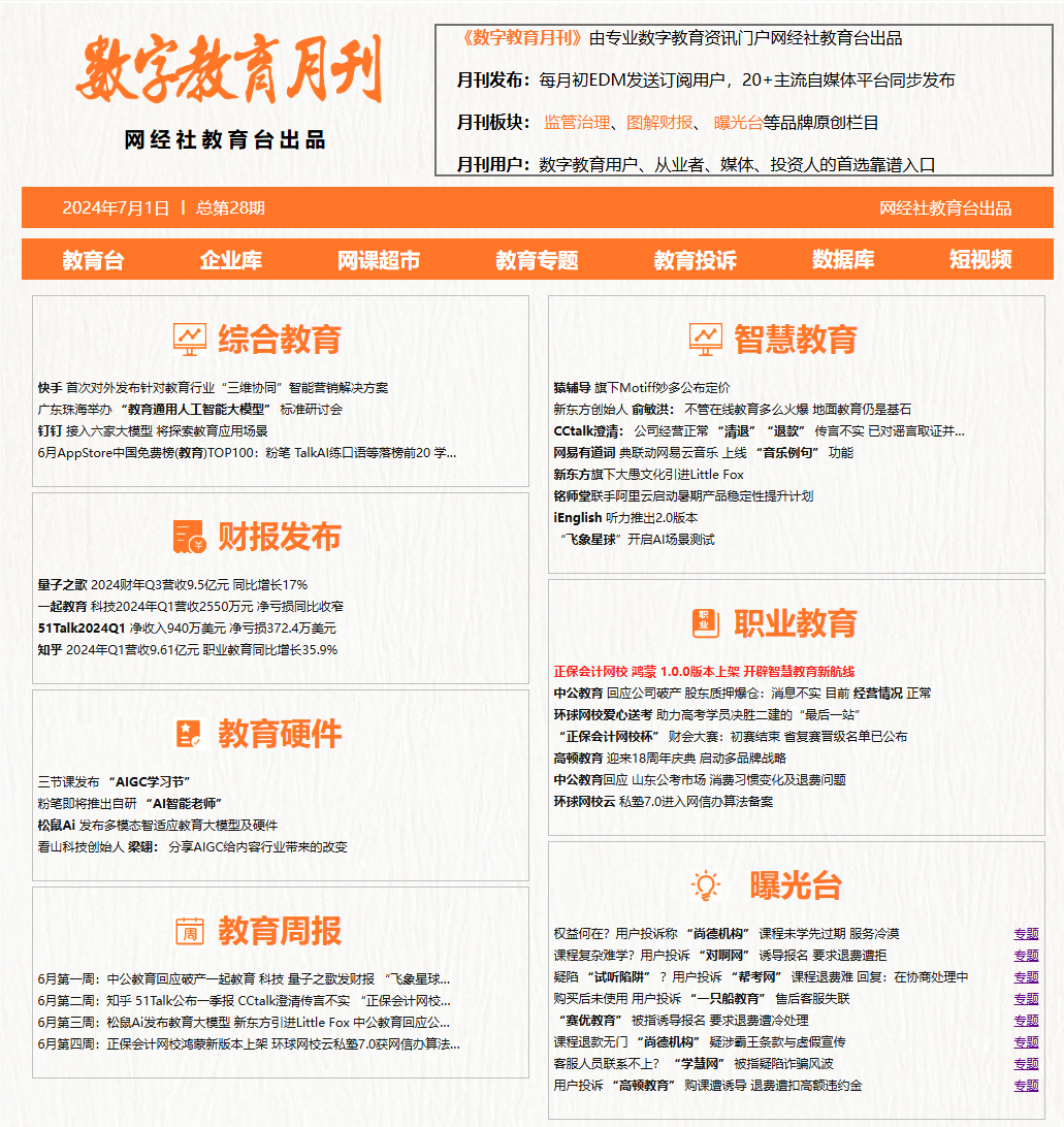 2024年6月份,數字教育領域又發生了哪些事情?以下為網經社教育台帶來本月最新動態回顧。