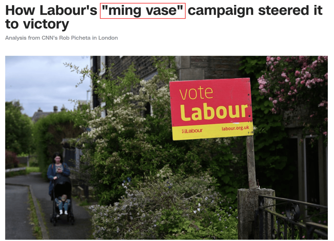 在西方主流媒體鋪天蓋地的報道中,工黨的競選策略再次浮現:Keir Starmer’s “Ming vase” strategy(斯塔默的“明代花瓶”策略)。請看CNN的報道: