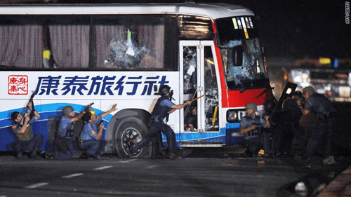 像2010年8月23日,菲律賓首都馬尼拉市中心基裏諾大看台附近,發生了一輛載有22名外國旅客的大巴遭遇歹徒劫持,造成多人傷亡的“首都劫持案”,而幾乎在同一時間的馬尼拉市另一端,一名旅居馬尼拉的韓國人連同其親友七人也被綁架後撕票。