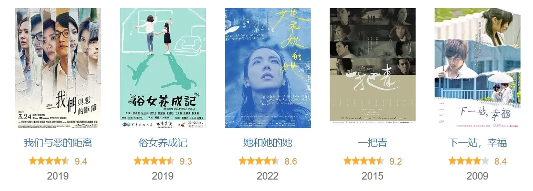 《我們與惡的距離》《一把青》《有生之年》《模仿犯》《華燈初上》《她和她的她》………