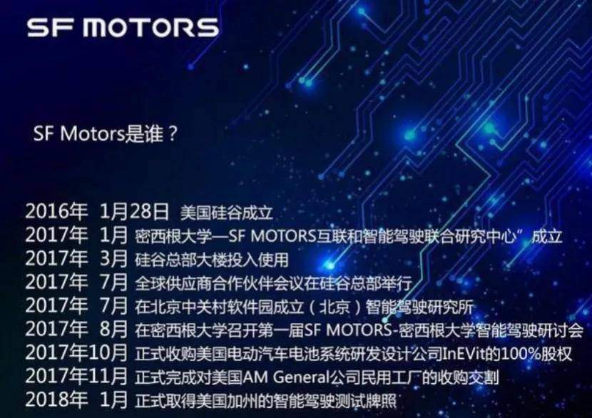 此後,SF Motors與密西根大學合作成立自動駕駛研究中心,獲得了美國加州頒發的自動駕駛路測牌照。