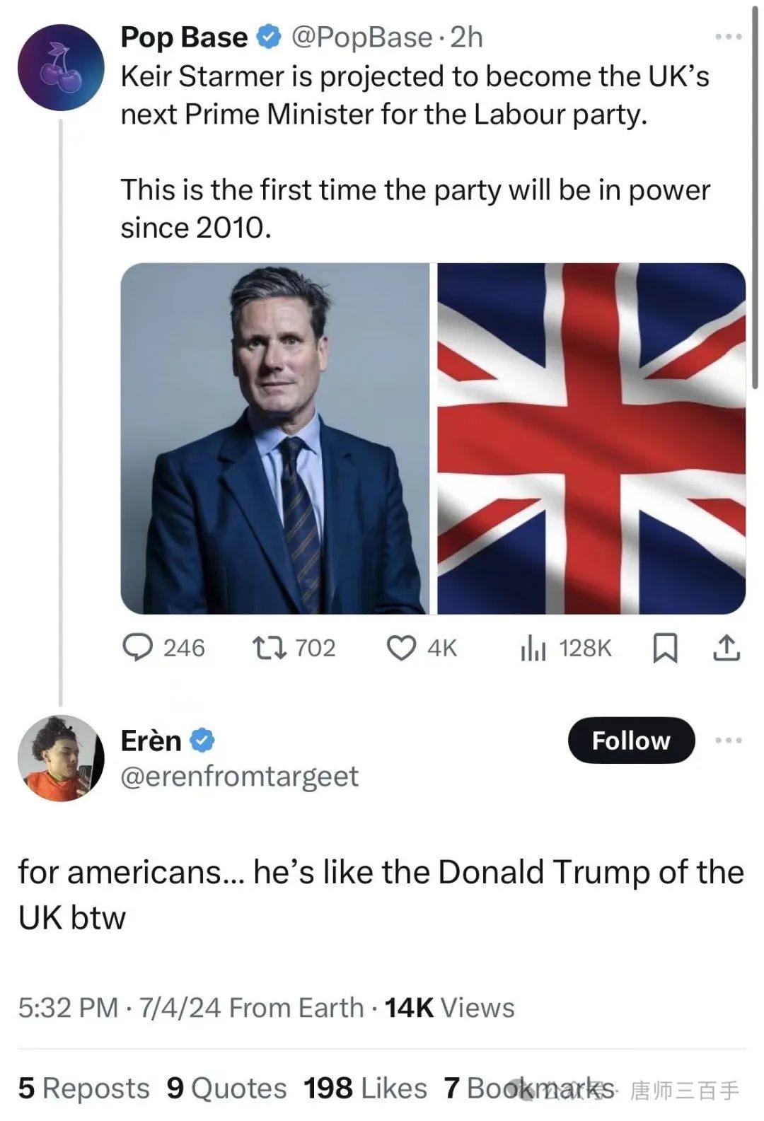 最新消息,蘇納克已經辭職,斯塔默候任。