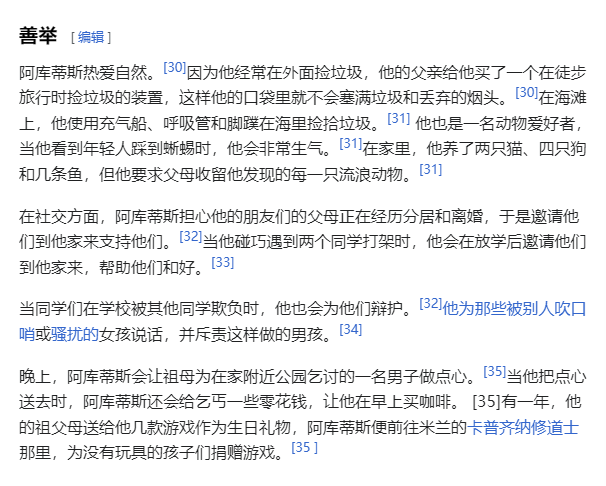 關於阿庫蒂斯生前的善舉,除了向沒有玩具的孩子們捐贈遊戲之外,説實話很難從公開的紀錄中找到什麼非同尋常之處。