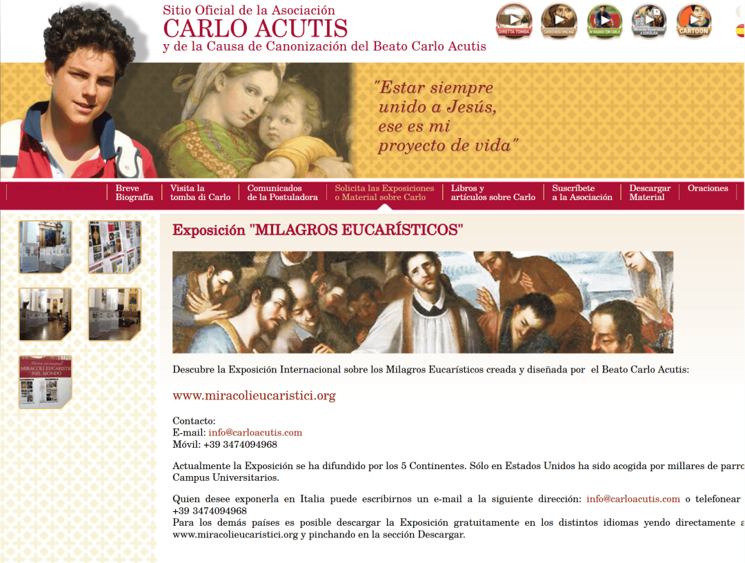 阿庫蒂斯建設的“聖人奇蹟展示平台”網站,