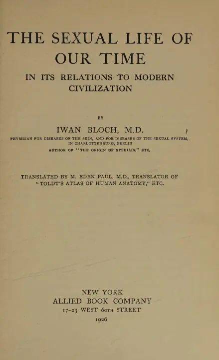 Iwan Bloch作品《我們時代的性》