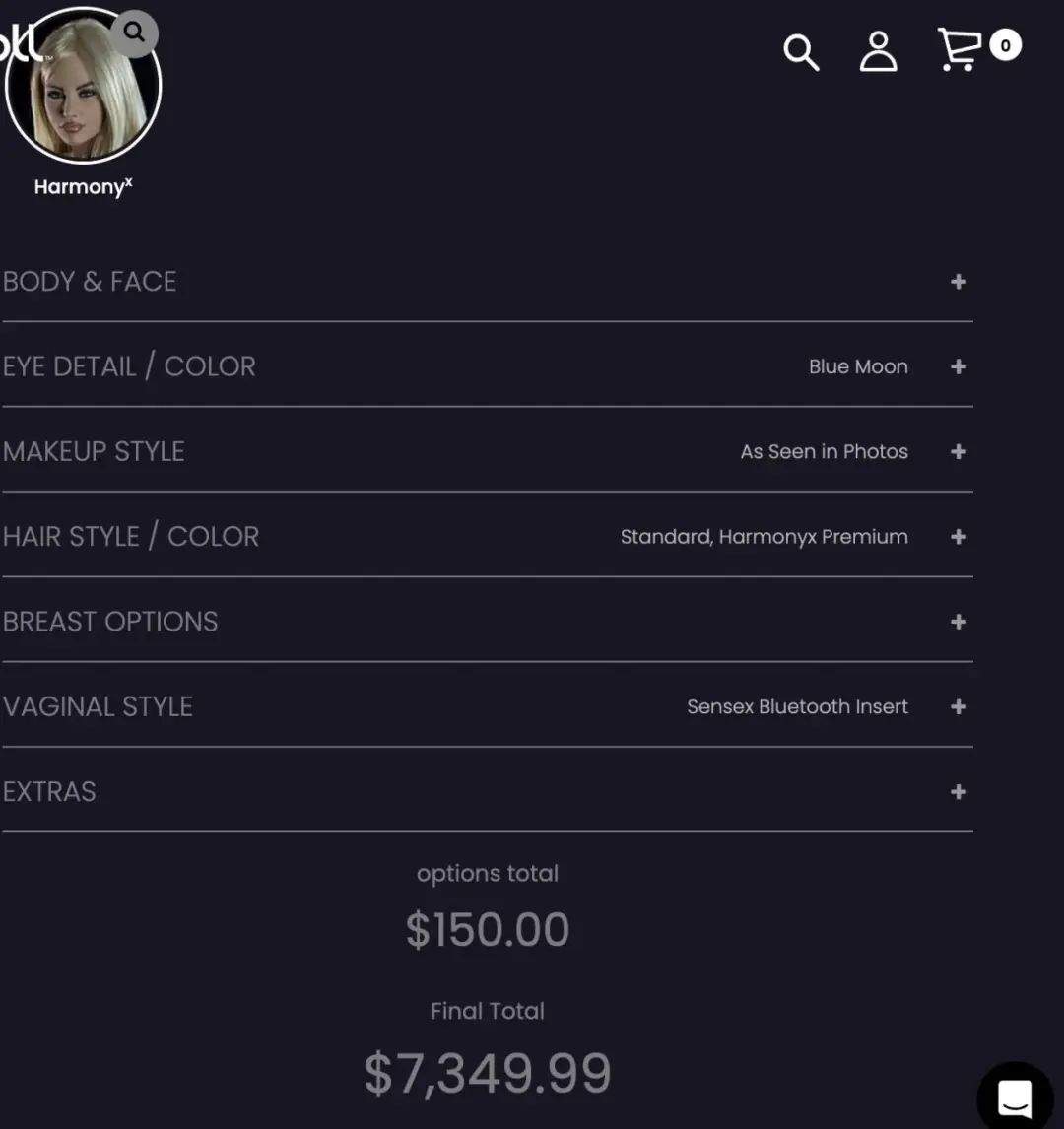 為了滿足玩家內心的幻想,它支持定製功能,允許玩家在官網中選擇和設計Harmony的面孔和身材特徵,可選內容包括眼睛、頭髮、妝造、胸部與生殖器等。