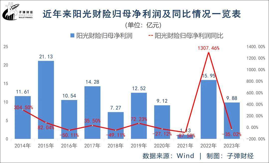 陽光財險淨利下滑趨勢延續2023年。2023年,其歸母淨利潤為9.88億元,同比下降35.02%。