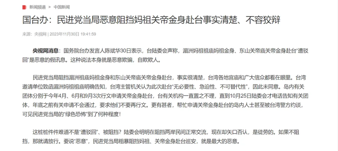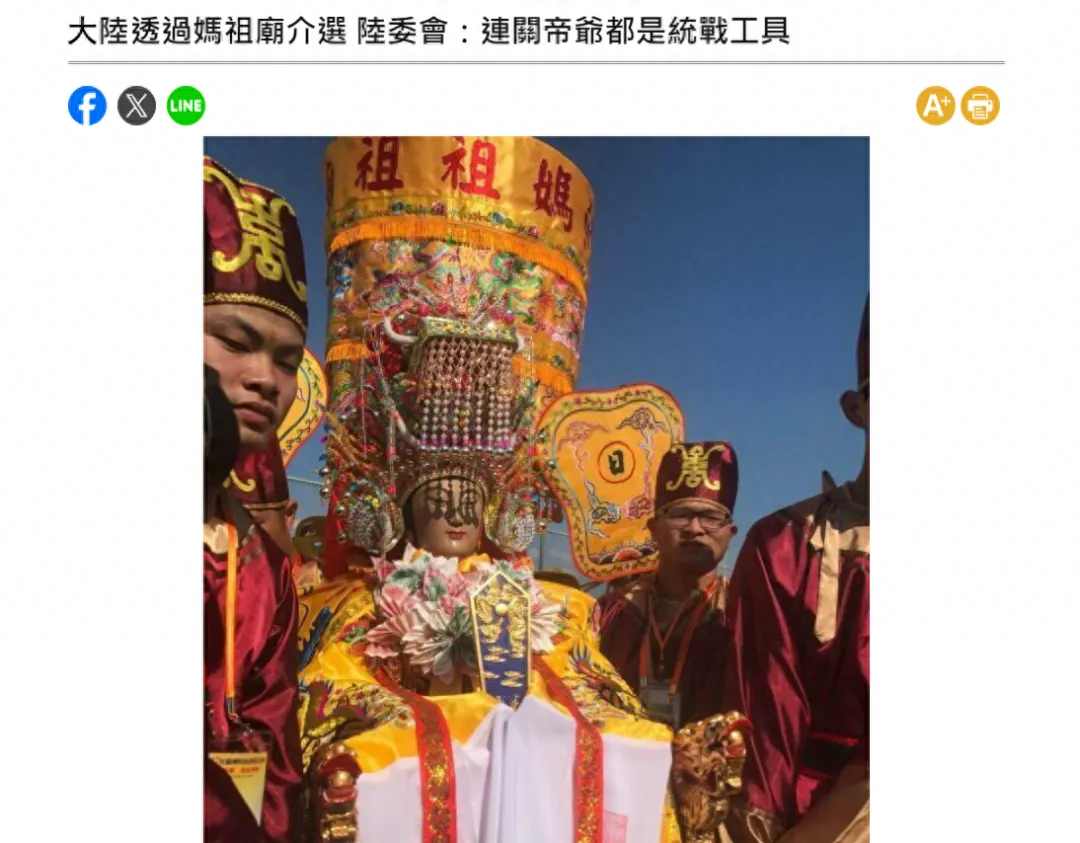 台媒這回是真破防了,為了祖國統一,連媽祖和關二爺都成黨的人了_風聞