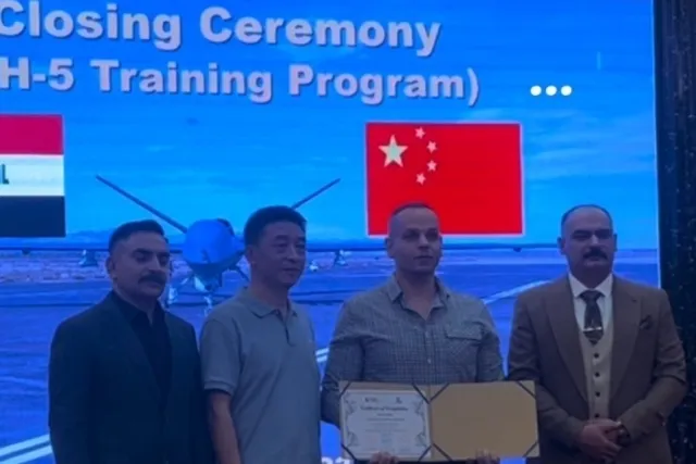 從第一個問題來説,其實早在2023年9月,伊拉克方面就曾經傳出,伊拉克陸軍航空兵正在派遣操作員和技術人員,來中國航天科技培訓彩虹-5型察打一體無人機的使用,當時連培訓合格證書都爆出來了,證明伊拉克政府已經採購了彩虹-5型無人機;而2024年五月份,伊拉克在一次防務展上,首次展出了自己的彩虹-5型無人機,而且是和伊拉克空軍的幾種主力戰鬥機F-16IQ,捷克的L-39教練機擺在一起,體現出了伊拉克對於該型主戰裝備的重視程度。因此,從伊拉克陸航裝備彩虹-5的時間來看,實際接收裝備的時間應該是去年年底到今年年初。