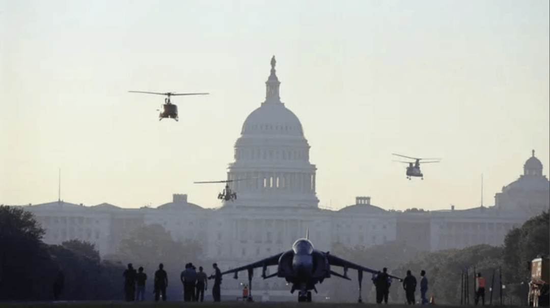 而且這些為了能讓議會批准參加閲兵,這些戰機是以飛行訓練的名義“順路”從華盛頓上空飛過的…….