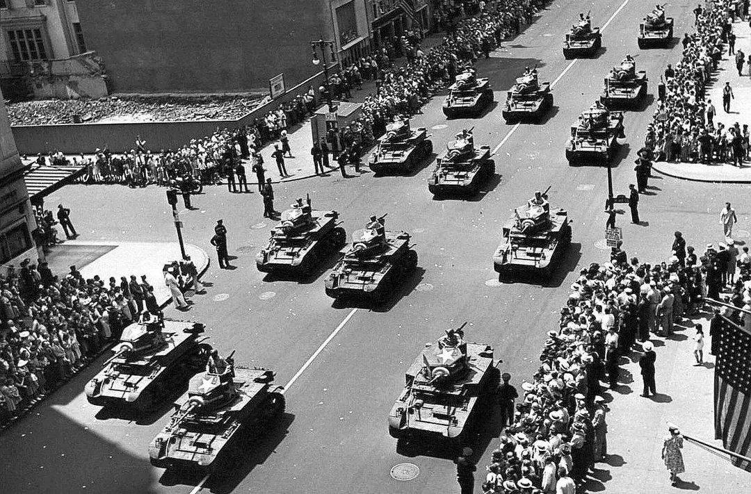 ▲M3斯圖亞特坦克隊伍參加紐約遊行,不過這隊形有點一言難盡了